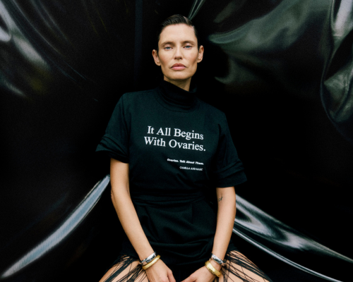 Supermodel ambassador joins forces with fashion brand for ovarian cancer campaign.